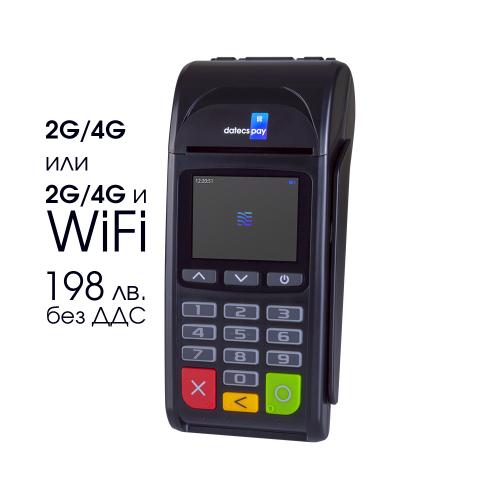 Притежава вграден термодиректен принтер за разпечатване на бонове с извършените транзакции и позволява работа посредством GPRS или WiFi, което го определя като самостоятелно платежното устройство.